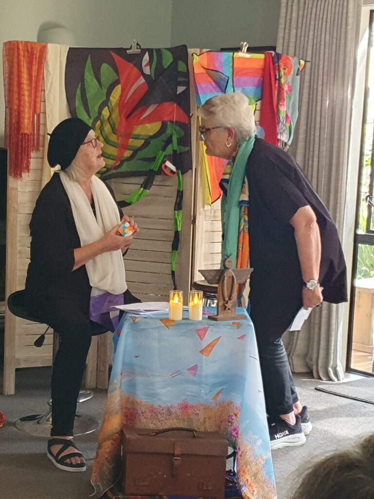 They have presented at events and locations in the Waikato and in Auckland, from a large RSA meeting, to retirement villages, a church, a golf club, a theatre, and private sitting rooms.  Audiences numbers range from 15 to 85 and usually consist of carers and family of those with dementia, as well as professional staff, and others from the community who are seeing with concern the increase of dementia in Aotearoa/New Zealand.